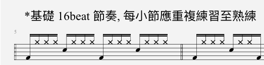 SP:40;X:20;FS:24;T:*基礎 16beat 節奏, 每小節應重複練習至熟練